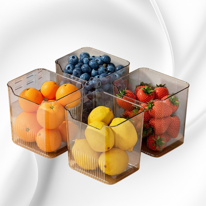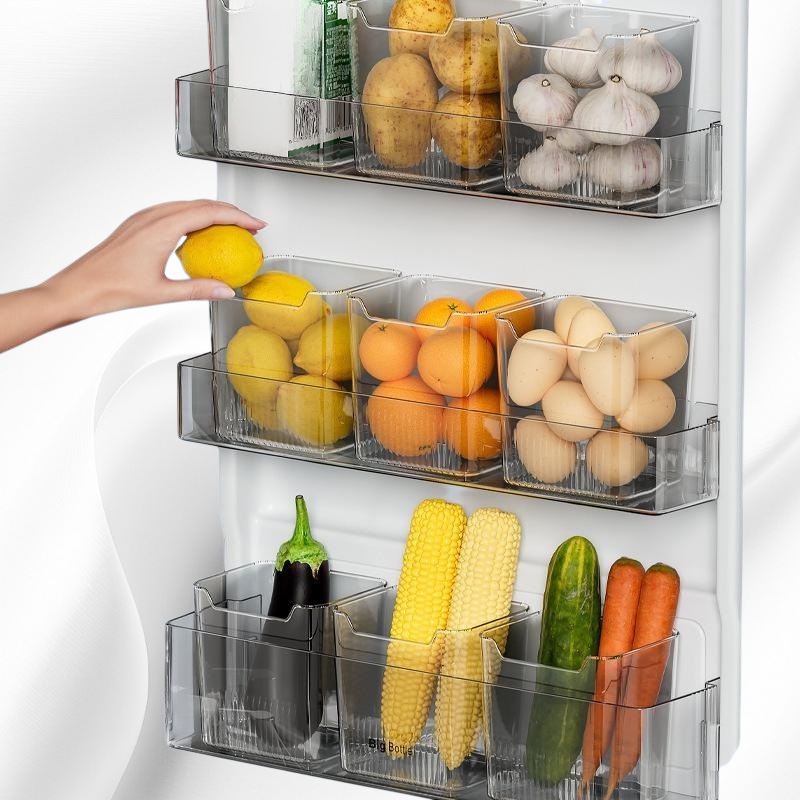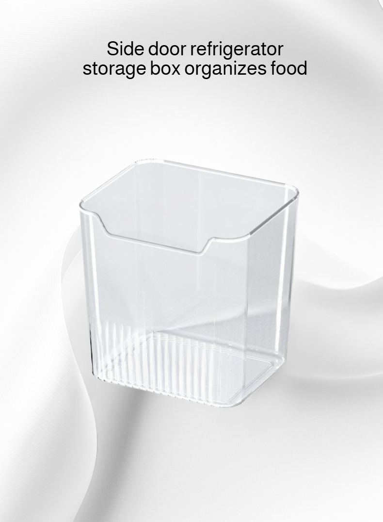Side door refrigerator storage box organizes food, vegetables, and fruits; clear classification; maximizes space; preserves freshness; durable material; easy to clean; suitable for most refrigerators.